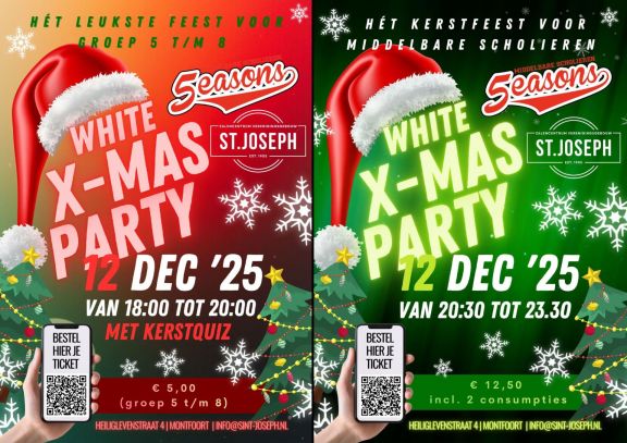 @stjosephmontfoort We laten de kerst niet aan ons voorbij gaan, daarom staat er op 15 december een mega leuke avond op het programma! Koop snel je kaartje! basischool: https://www.wittekerstbal.nl/ middelbare school: https://5seasons-events.nl/ #montfoort #feestje #desoos ♬ All I Want for Christmas Is You - Mariah Carey