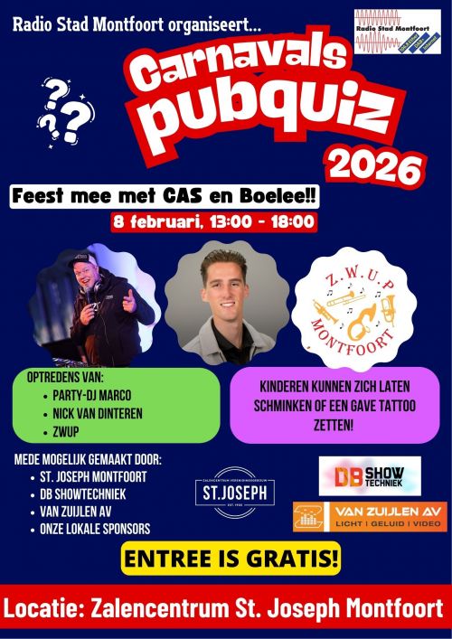 🎭Zondag 8 februari is het weer zover: de Radio Stad Montfoort Carnavals Pubquiz staat opnieuw op het programma! De teams zitten inmiddels bomvol, maar geen zorgen - ook zonder quizteam ben je méér dan welkom om mee te genieten🍻🥳