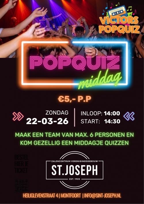Op zondag 22 maart presenteert Victor Verseveldt de enige echte popquiz in het St. Joseph![]()